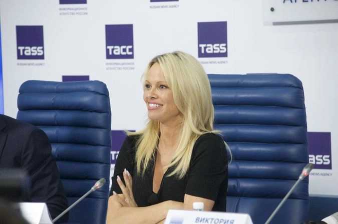Зал пресс-центра ИТАР ТАСС был заполнен почти под завязку, когда туда спустилась Памела. Так вышло, что сразу после появления актрисы журналисты-мужчины все как один превратились в героя Саши Барона Коэна Бората Сагдиева — попытки флиртовать и пикантные вопросы позволял себе буквально каждый первый.