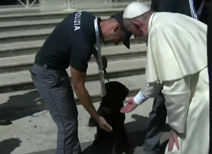 Папа Франциск пожал лапу псу, который спас девочку после землетрясения