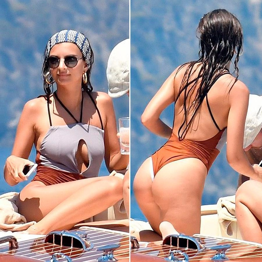 Топ-модель Эмили Ратаковски продемонстрировала свои аппетитные формы во время отдыха на катере в Италии. Папарацци засекли 26-летнюю модель в модном купальнике, выгодно подчеркивающем ее соблазнительные изгибы.