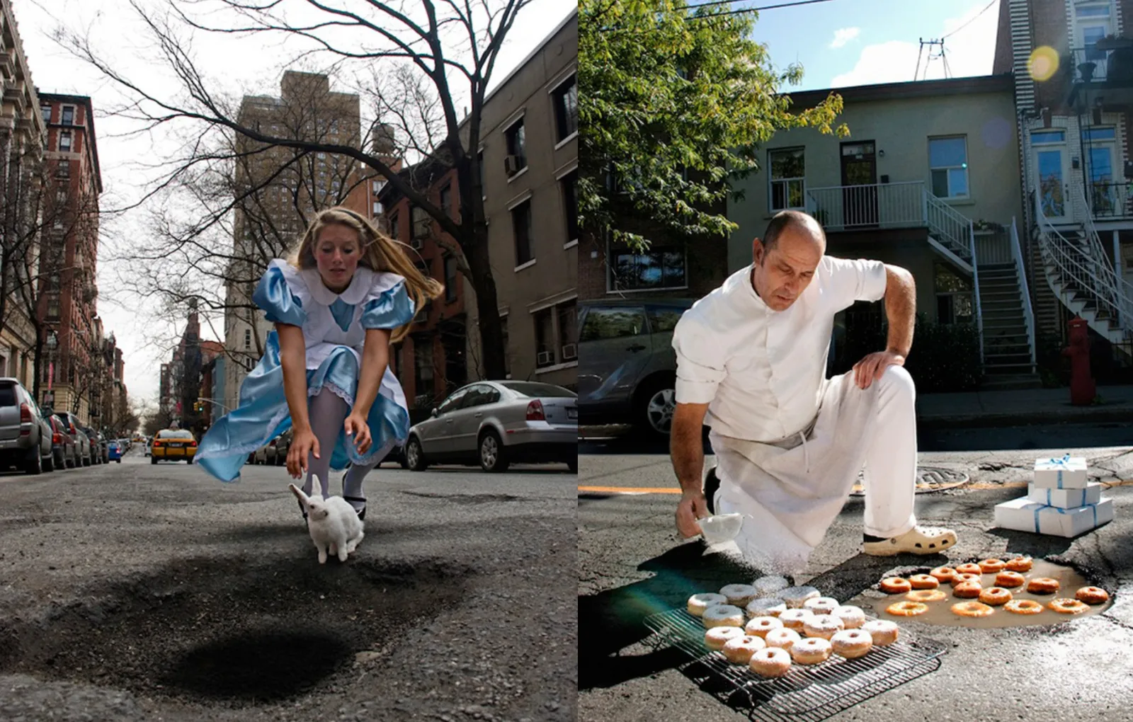 Выбоины на дорогах — кошмар любого водителя. Когда никто не собирается их устранять, приходится справляться с досадой от их существования с помощью юмора. Фотографы Клаудия Фикка и Давиде Лучано так и делают. Они превращают выбоины на асфальте в необычные и забавные фотошедевры под названием Potholes.
