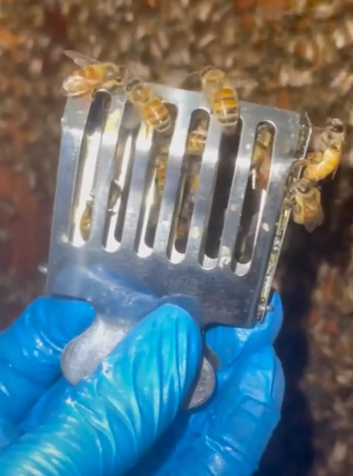 Внимательно осмотрев улей, девушка принесла металлический зажим, предназначенный для перемещения пчелиной матки, чтобы вместе с ней переселить остальных насекомых в их новый дом, пишет New York Post.