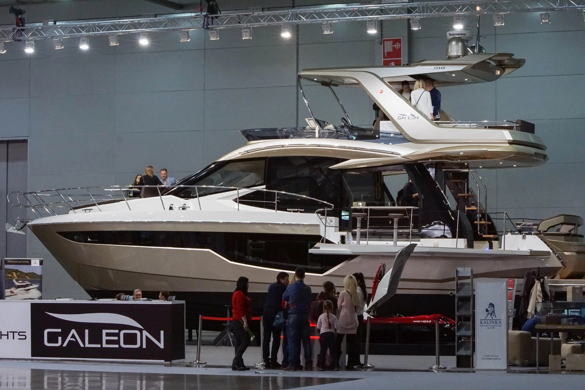 В этом году выставка выглядела несколько иначе: по понятным причинам там отсутствовал целый ряд известнейших мировых брендов с самыми крупными и дорогими судами. Впрочем, два исключения на Moscow Boat Show все-таки были. Это одна из самых ярких моделей Azimut Yachts — бестселлер флайбриджной коллекции Azimut 55 Fly, получившая награду World Yacht Trophies 2018 за лучший дизайн интерьера. Не менее прекрасен был и образец от дизайн-студии Тони Кастро — Galeon500FLY. Как пояснила корреспондентам «Ридуса» представительница компании, этот «Галеон» уже продан, за сумму в несколько десятков миллионов.