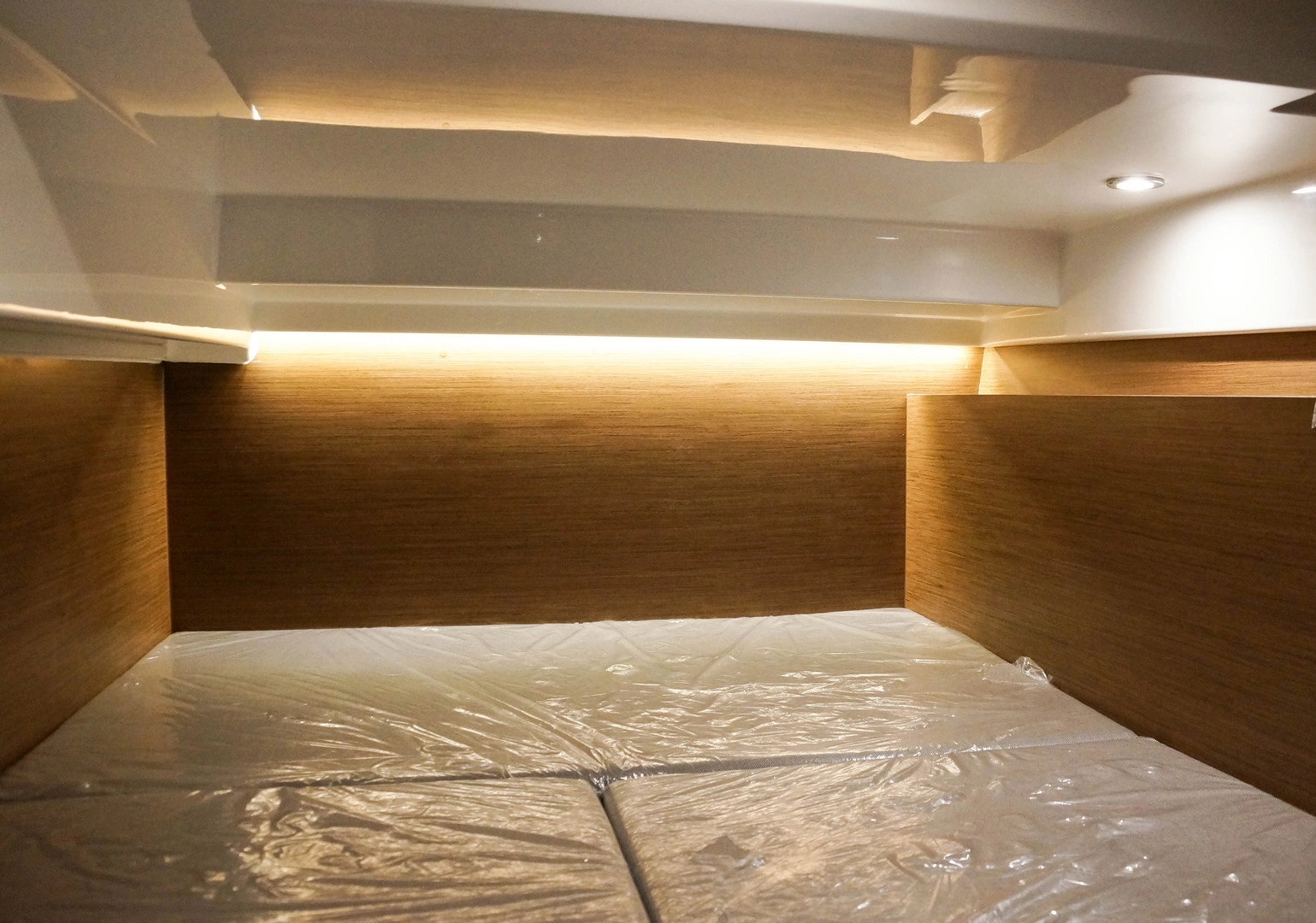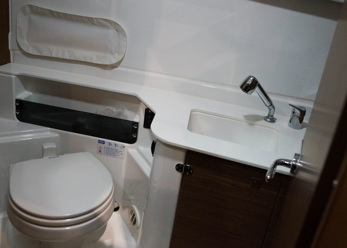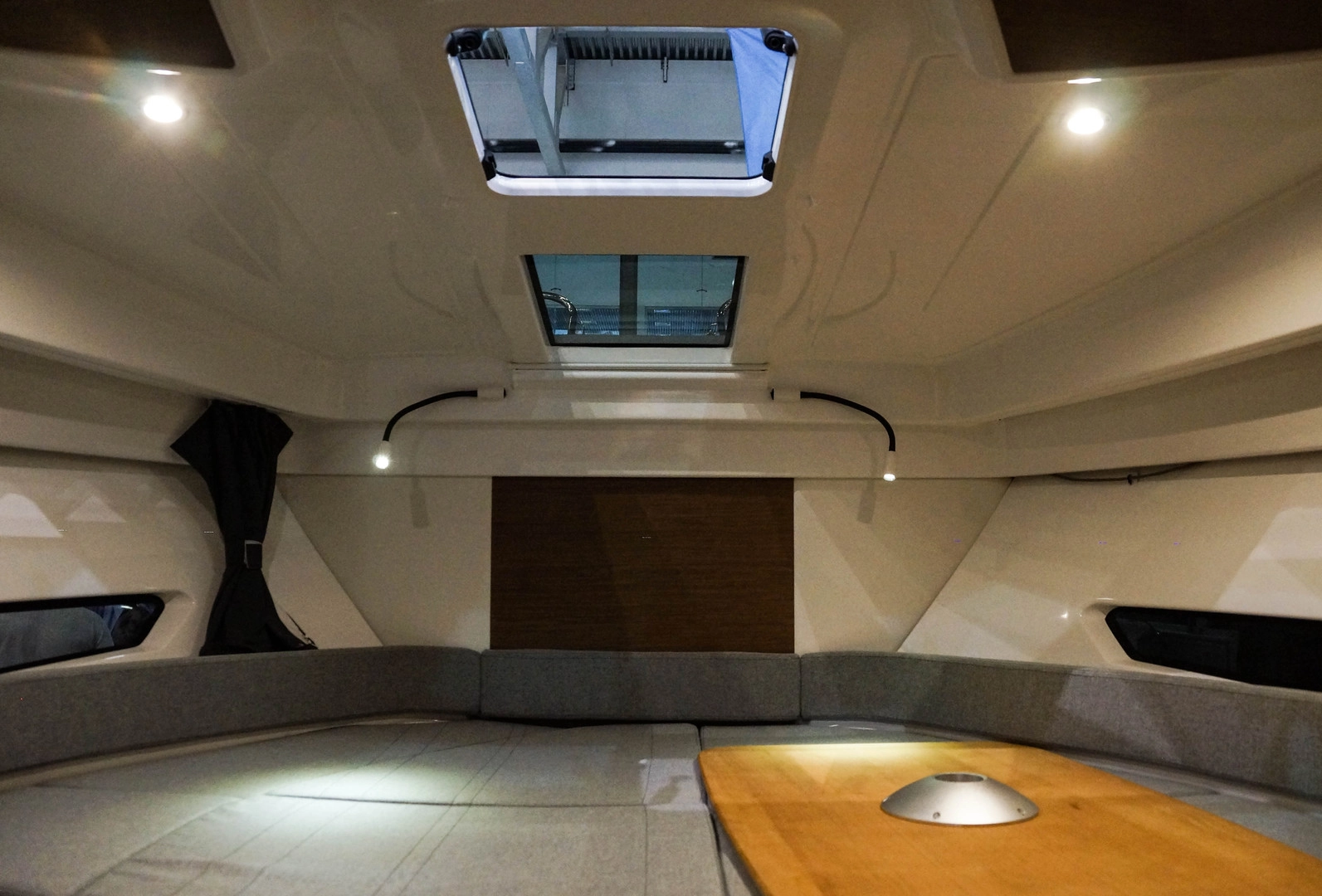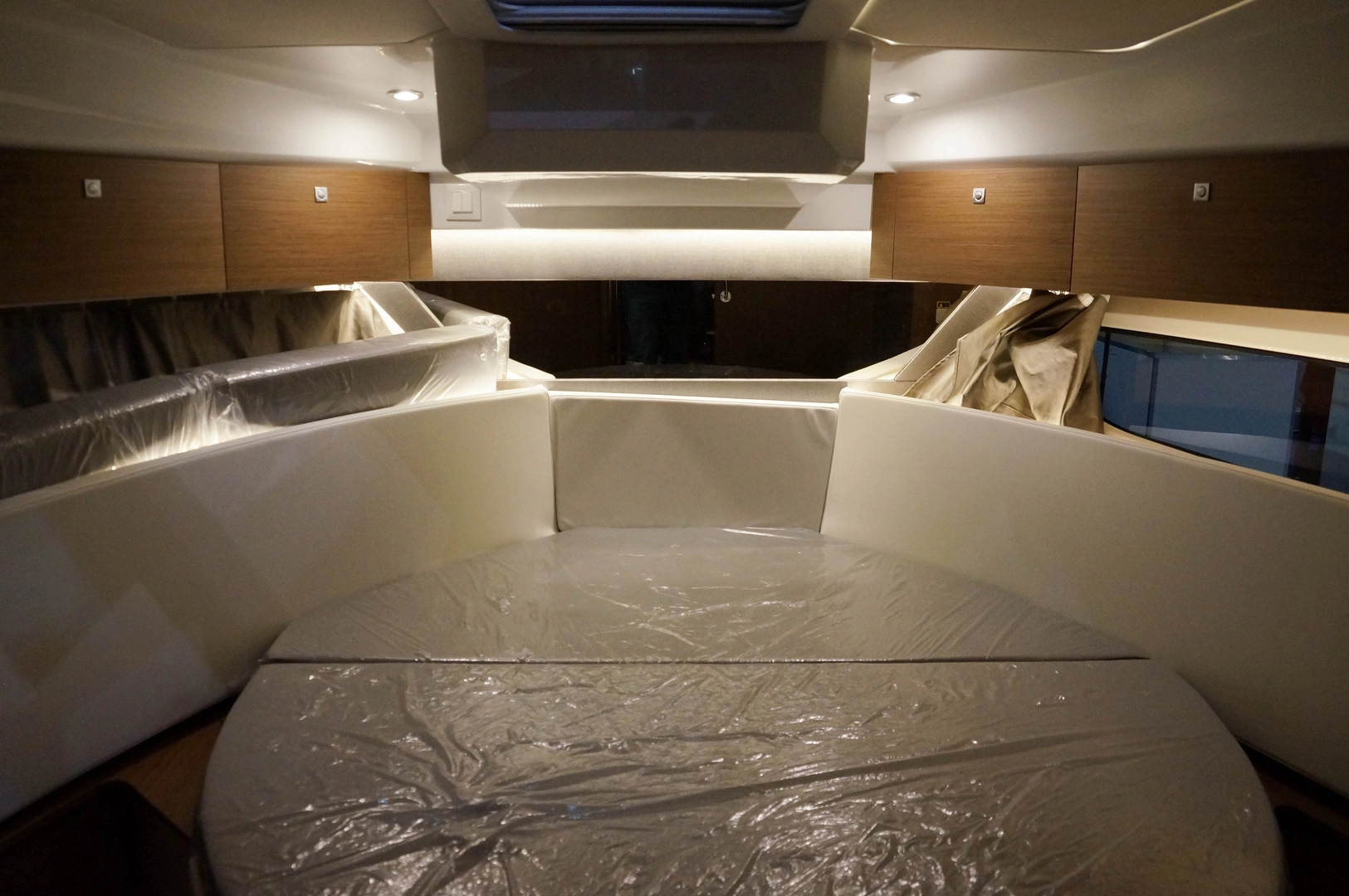 Немного интерьеров моторных яхт. В большинстве случаев среднеразмерные лодки имеют две жилые каюты и отдельный санузел.