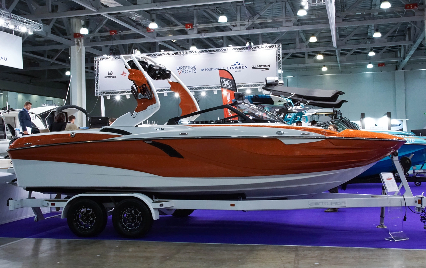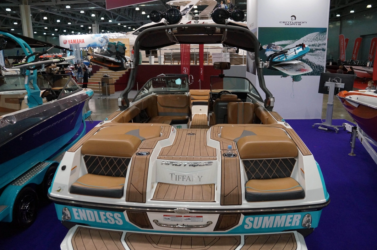 Отдельной частью экспозиции выставки стали быстроходные катера-буксировщики для вейка и других спортивных тренировок на воде. Стоимость лодок укладывается в рамки 10 млн. рублей.