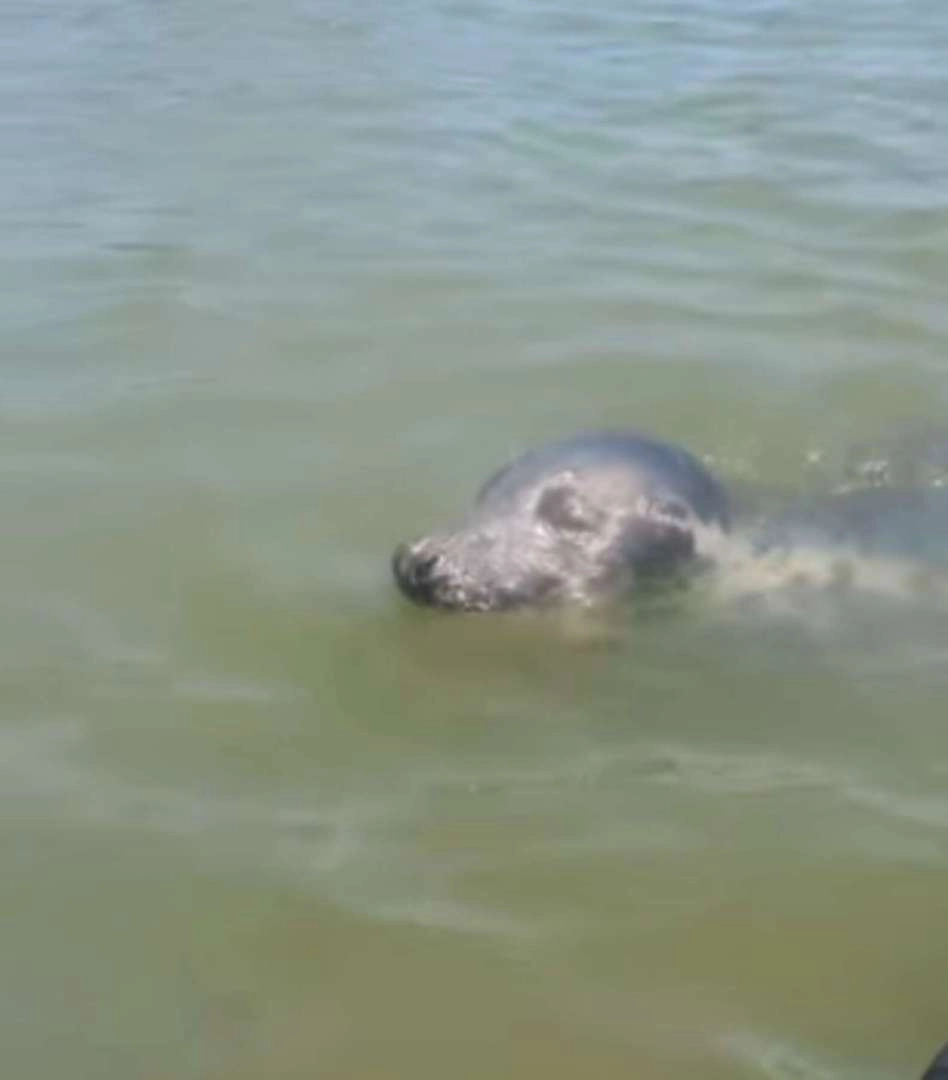Парень катался на доске и заметил в воде голову. Он испугался, но напрасно