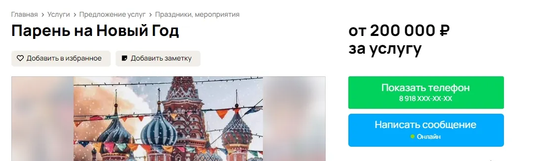 «Парень на Новый год» предлагает на «Авито» идеальное свидание за 200 тысяч рублей