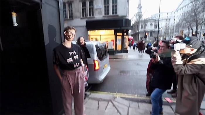 Глядя на парня в розовых штанах, чёрной футболке с наклейками и очках с огромными буквами на дужках, папарацци тут же решили, что перед ними знаменитость, и начали активно его фотографировать. Герою оставалось только позировать на камеру с отрешённым выражением лица.