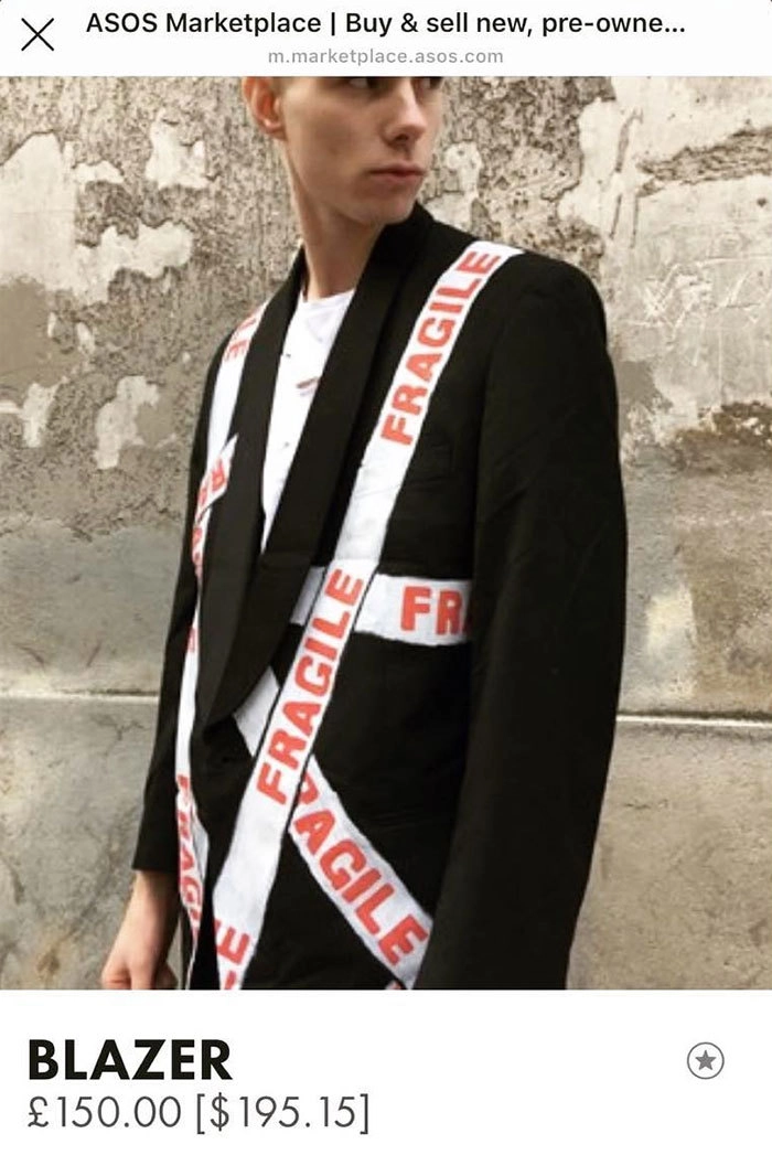 Кстати, вскоре после этой забавы известный бренд ASOS выпустил блейзер, похожий на наряд фальшивой модели с наклейками из чёрного скотча с буквами. Магазин продаёт новинку за 150 фунтов стерлингов.