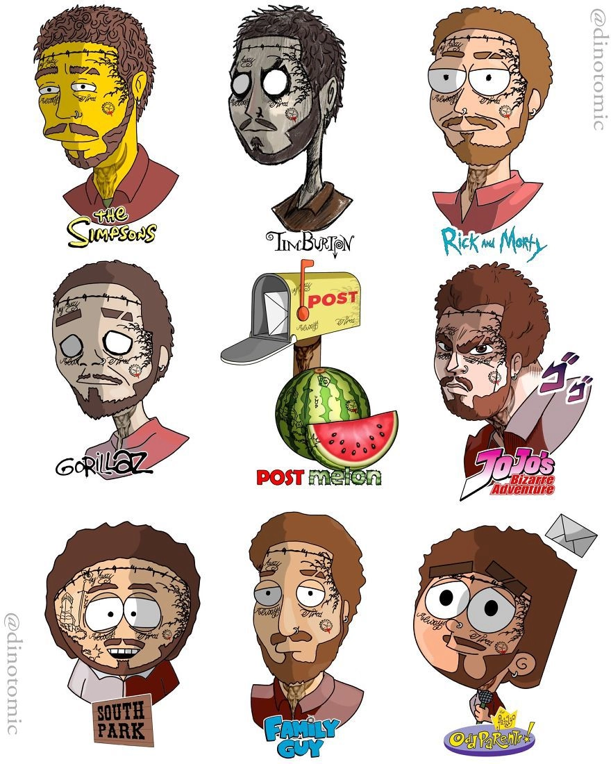 На карантине Дино начал забавный проект, чтобы отвлечься от всего происходящего в мире. Парень показал свое мастерство и нарисовал знаменитостей, а также популярных персонажей в разных мультяшных стилях. Результат получился невероятно крутым и поражающим воображение! Каждую получившуюся «личность» хочется рассматривать часами.