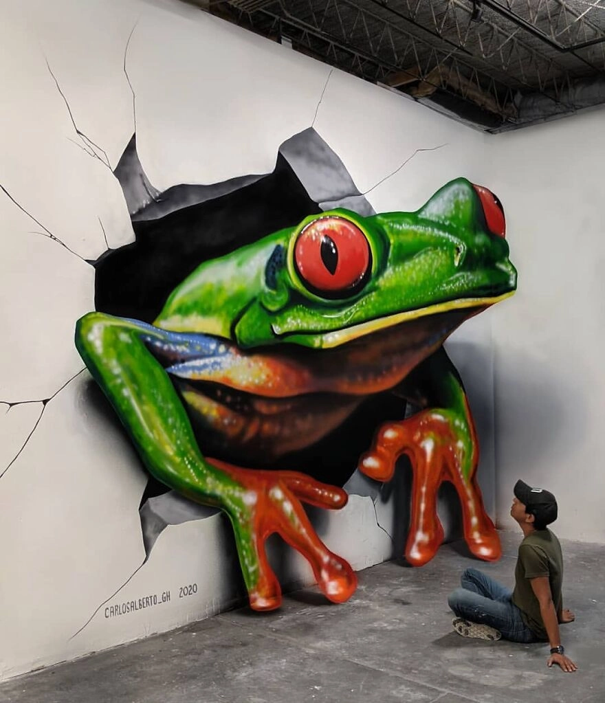 У многих людей уличные граффити ассоциируются с сомнительными рисунками, которые только портят внешний вид зданий. Однако 31-летний художник из Мексики Карлос Альберто превращает унылое городское пространство в настоящее искусство. Парень создает невероятные 3D-рисунки, которые под правильным углом словно оживают.