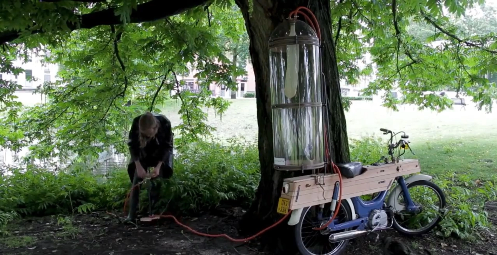 Свое творение голландец назвал Sloot Motor: оно оснащено модифицированным мотоциклетным двигателем Honda GX160 с отверстием в воздушной камере, через которое поступает метан. Гийс прицепляет к отверстию баллон, заполненный газом, который выполняет роль топливного бака.