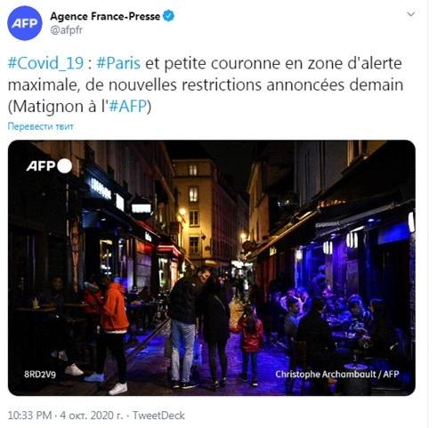 Париж объявлен зоной максимальной опасности распространения COVID-19