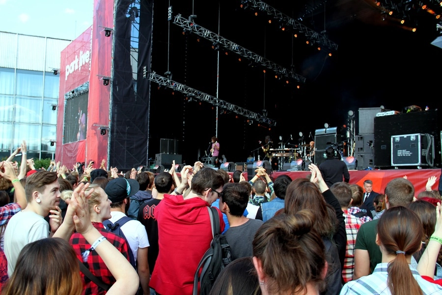 Ну, а через 200 метров от входа на фестиваль - главная сцена. Именно здесь должны были случится главные события дня - выступления самых брутальных из заявленных на Park Live коллективов.
