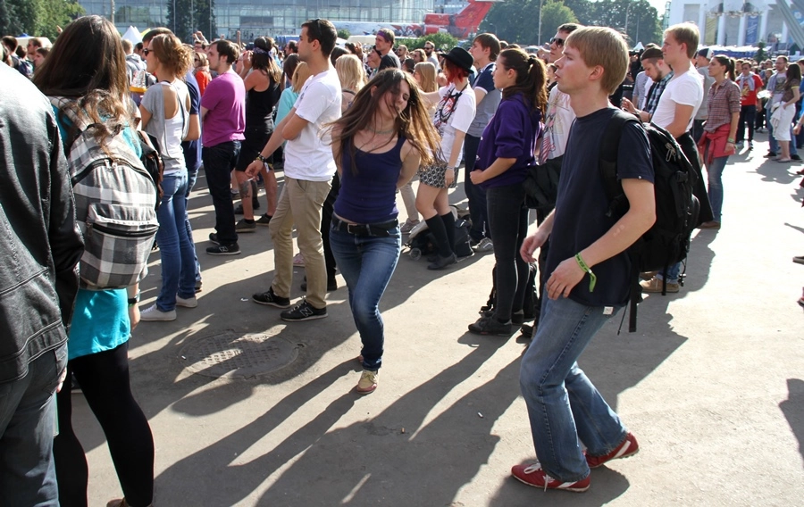 К слову о комфорте. Организаторы фестиваля учли одну из главных ошибок прошлогоднего фестиваля и разрешили снимать повсеместно на любые носители. Оттого публика поделилась на две более-менее равные части — тех кто слушает и танцет и тех кто фиксирует картину и «е…шит луки»…