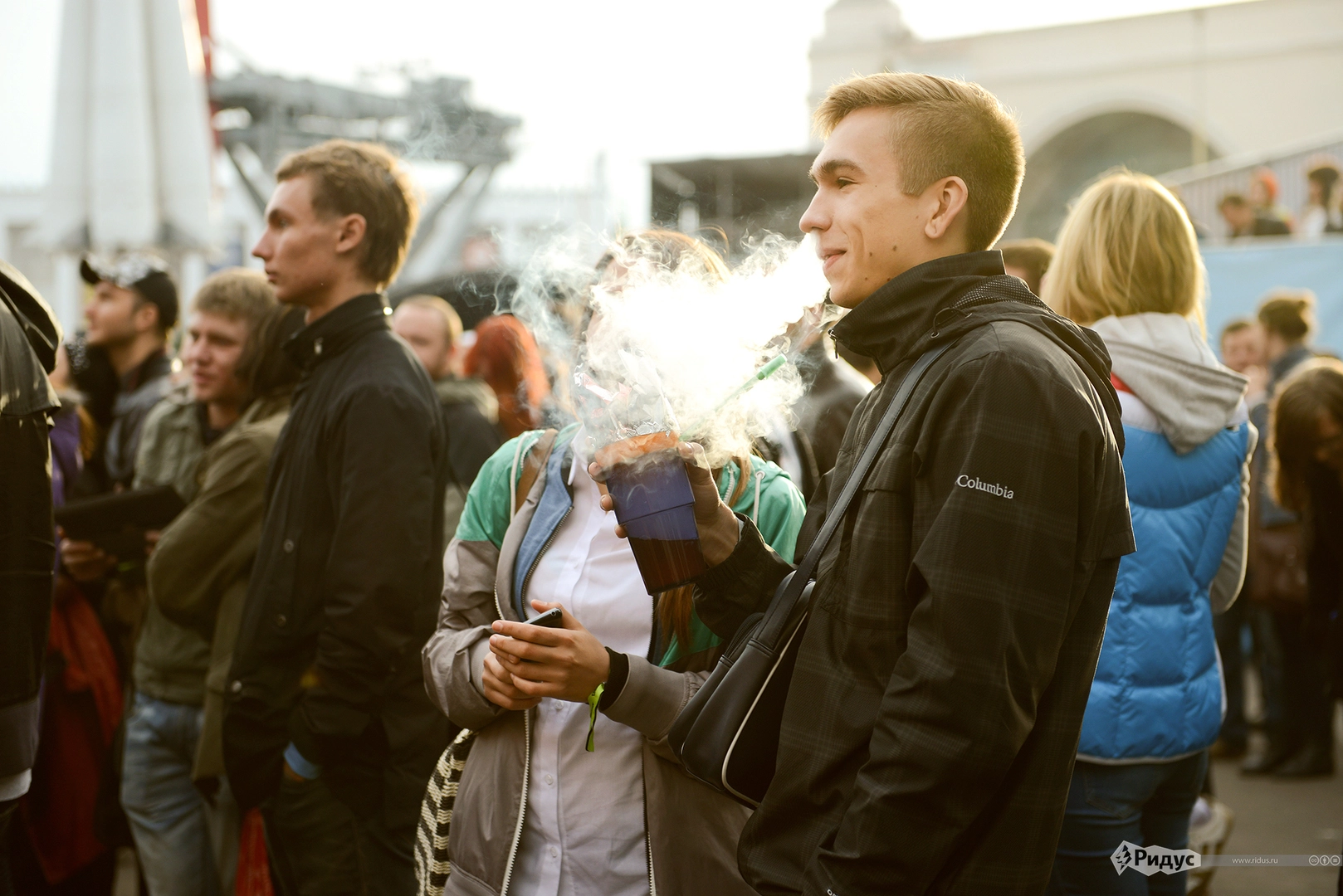а молодые люди стояли с невозмутимыми довольными лицами, потягивая переносные кальяны.