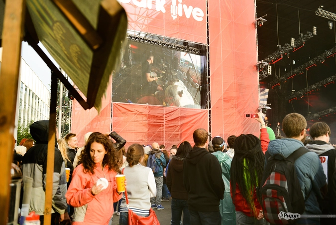 Особое настроение появлялось, стоило только зайти через центральный вход... Почти пустая аллея длиной в километр, расстилающаяся до Park live, с каждым новым шагом наполнялась всё более громкими звуками, доносящимися со сцены Cosmos. Потрясающая акустика! По телу даже пробежала небольшая дрожь, когда до точки назначения оставалось каких-то триста метров.