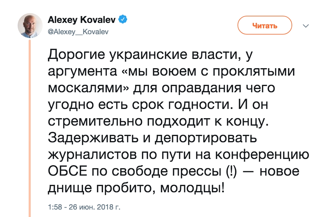Сам Примаков после кратковременного задержания отметил на своей странице в Facebook, что ему «просто закрыли въезд на пять лет как персоне, угрожающей безопасности Украины».