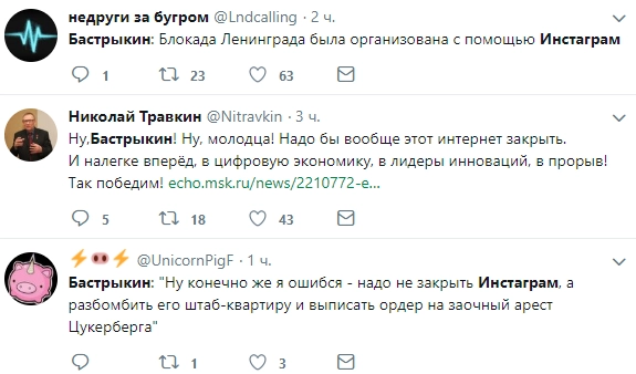 «В Турции вместо Yandex, Google есть своя информационная система работы для детей. А мы даже Instagram закрыть не можем. А между прочим, Instagram надо закрывать, потому что теракт в Ленинграде в прошлом году был совершен при помощи Instagram», — заявил он на съезде уполномоченных по правам детей.