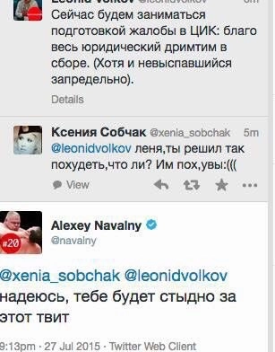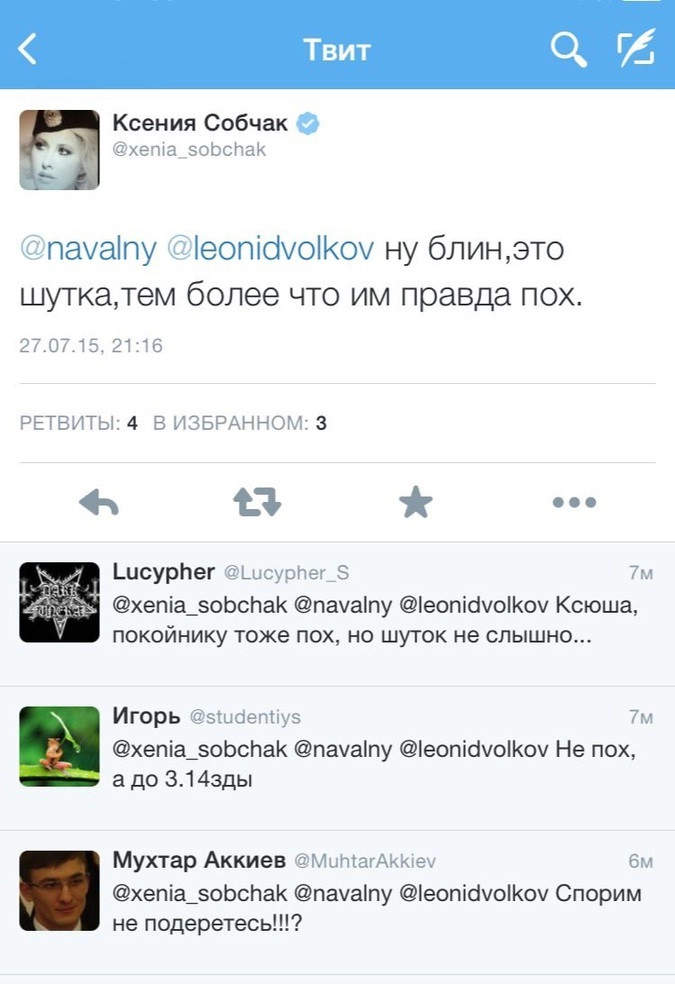Масла в огонь массовой истерии подлила и телеведущая Ксения Собчак: в своем Твиттере она сперва написала глумливое сообщение, что Волков посредством голодовки решил похудеть, однако позже удалила твит и даже извинилась.