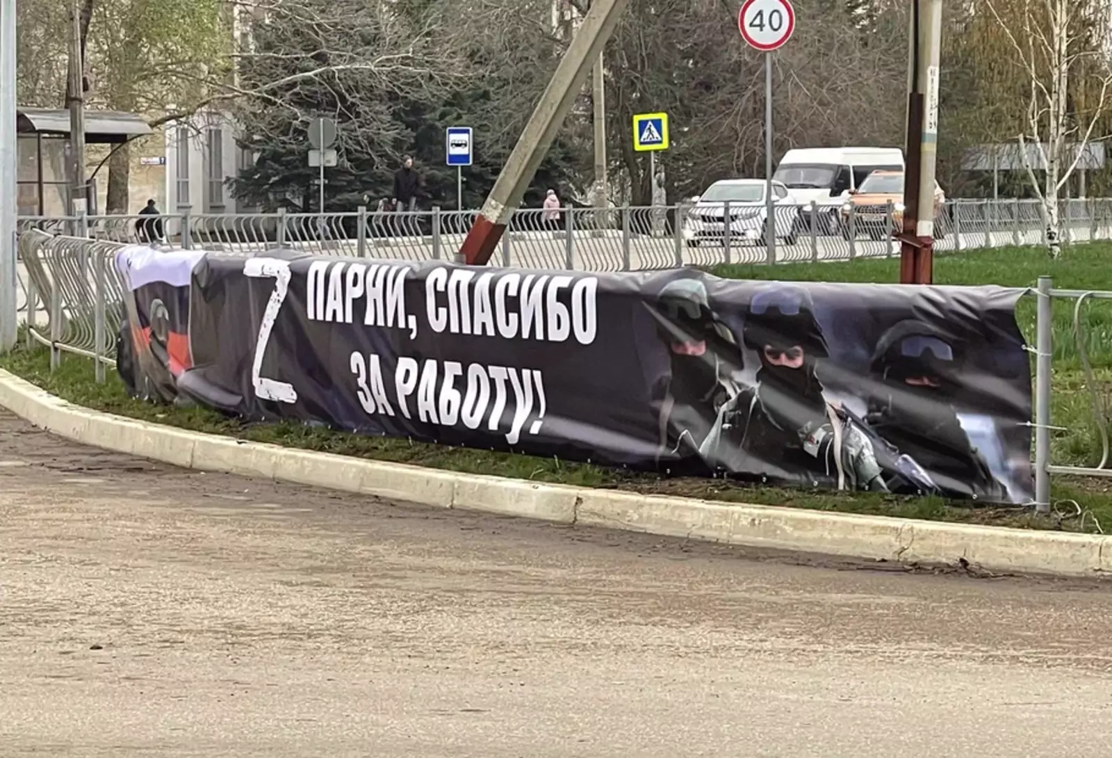 Баннер «Парни, спасибо за работу!» появился на одном из перекрестков Армянска в Крыму. Его установили участники волонтерской группы «Мы Вместе» под руководством депутата Госдумы, замруководителя фракции «Единая Россия» Игоря Кастюкевича.