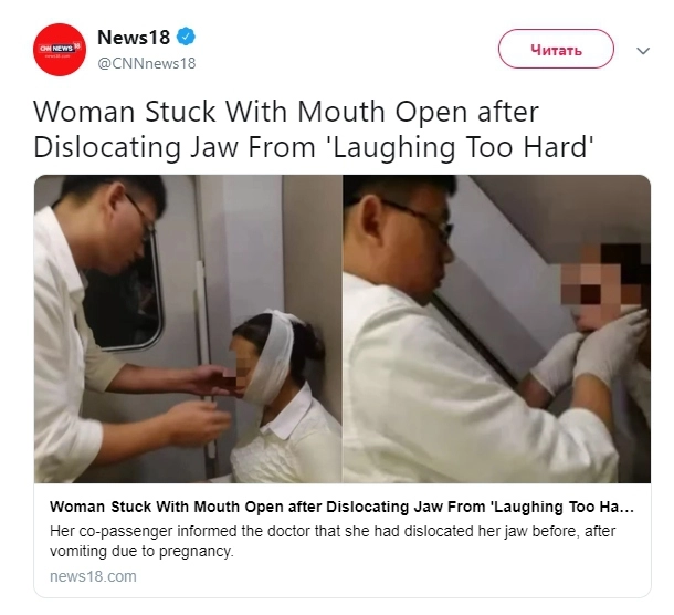 Отмечается, что пострадавшая от сильного хохота застыла с открытым ртом и не могла нормально говорить. К счастью, в этом же поезде ехал врач Луо Вэньшэн.