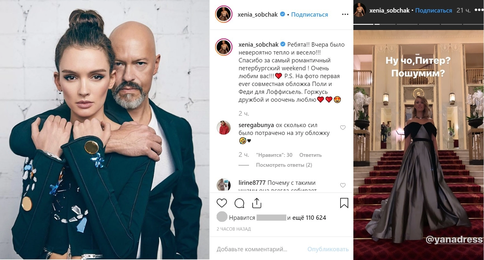 Ксения Собчак опубликовала фото молодоженов в Instagram и написала, что очень их любит и гордится дружбой с ними. Также она показала в Stories свой образ на торжестве друзей. Примечательно, что Собчак — близкая подруга Светланы Бондарчук, бывшей жены жениха.