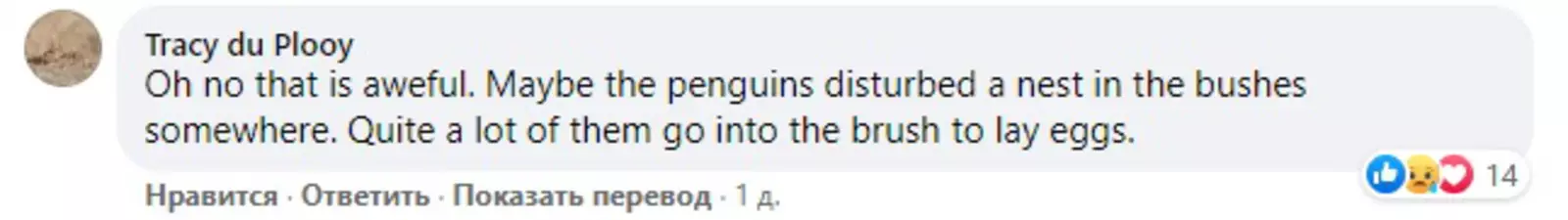 Видимо, пингвины потревожили улей где-то в кустах, куда забрели в поисках укромного места для откладки яиц.