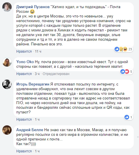 Но были и достаточно серьезные отклики, в которых одни пользователи резко критиковали «Почту России», называя ее «квестом», а другие не находили в ее работе никаких недостатков.
