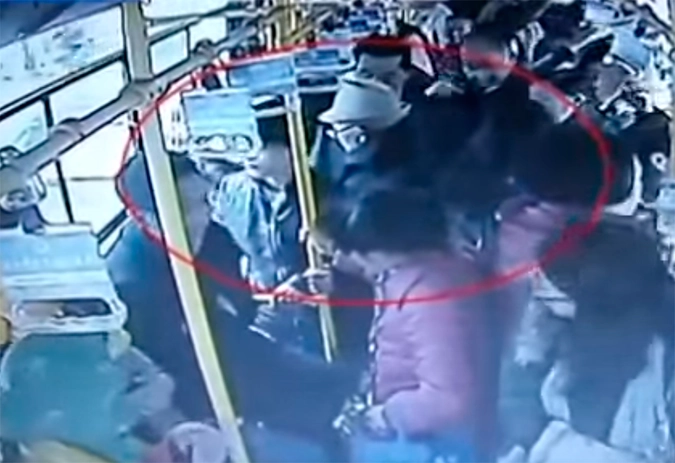 В Сети появилось видео нападения пожилого человека на беременную девушку в автобусе.