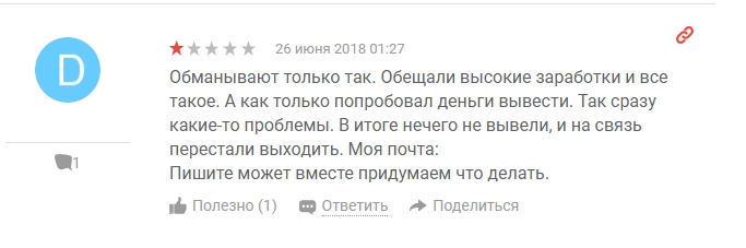 «В сухом остатке: компания под названием FTO Capital, лучший трейдер-брокер-платформа-ваши инвестиции-наше будущее, не имеет никакого российского юрлица. Бабло со свистом улетело на счета в Болгарию и Лондон. В налоговой не зарегистрированы. Связаться с ними можно через форму на сайте — не сомневайтесь, вам обязательно ответят. На претензию, отправленную по мылу на адрес поддержки, пришло письмо о том, что чудо-брокер продал свой бизнес другому чудо-брокеру и все претензии теперь туда. Адреса, конечно, не указано. Вход в личный кабинет на сайте заблокирован», — добавила девушка.