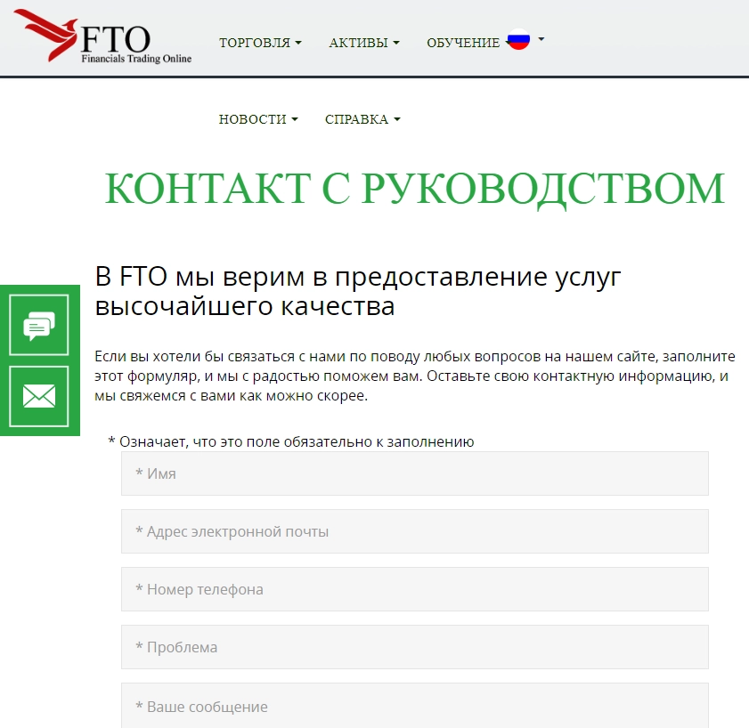 На сайте FTO указано, что это «лидирующая компания, которая помогает трейдерам работать на валютном рынке», и «ведущий брокер в сфере онлайн-торговли».