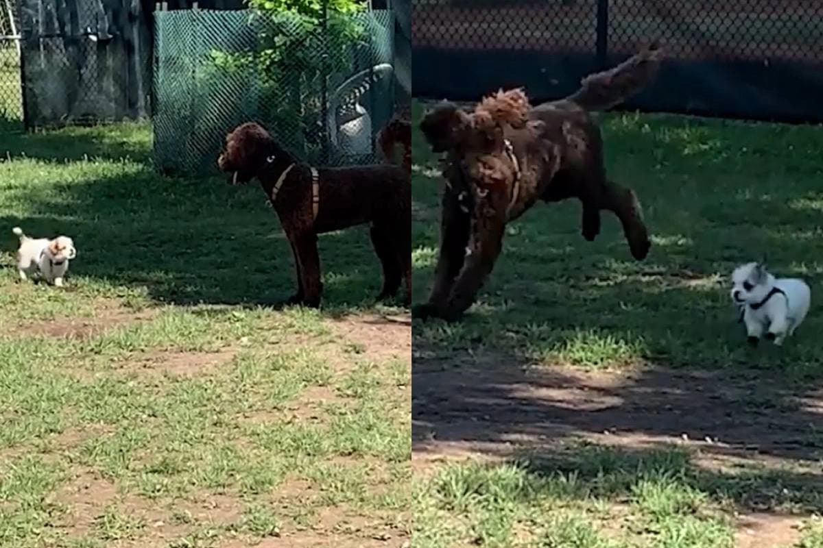 «Когда провела в голове необходимые расчёты, но оказалась плоха в математике» — ролик с таким ироничным названием стал популярным в интернете. На вирусных кадрах можно увидеть маленькую собачку, которая очень дерзко ругается на большого пса. Однако вся спесь с малявки слетает спустя пару секунд после того, как гигант решает за ней побегать.