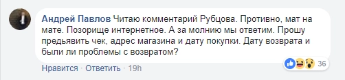 Владелец бренда попросил недовольного покупателя предъявить чек и указать место покупки.