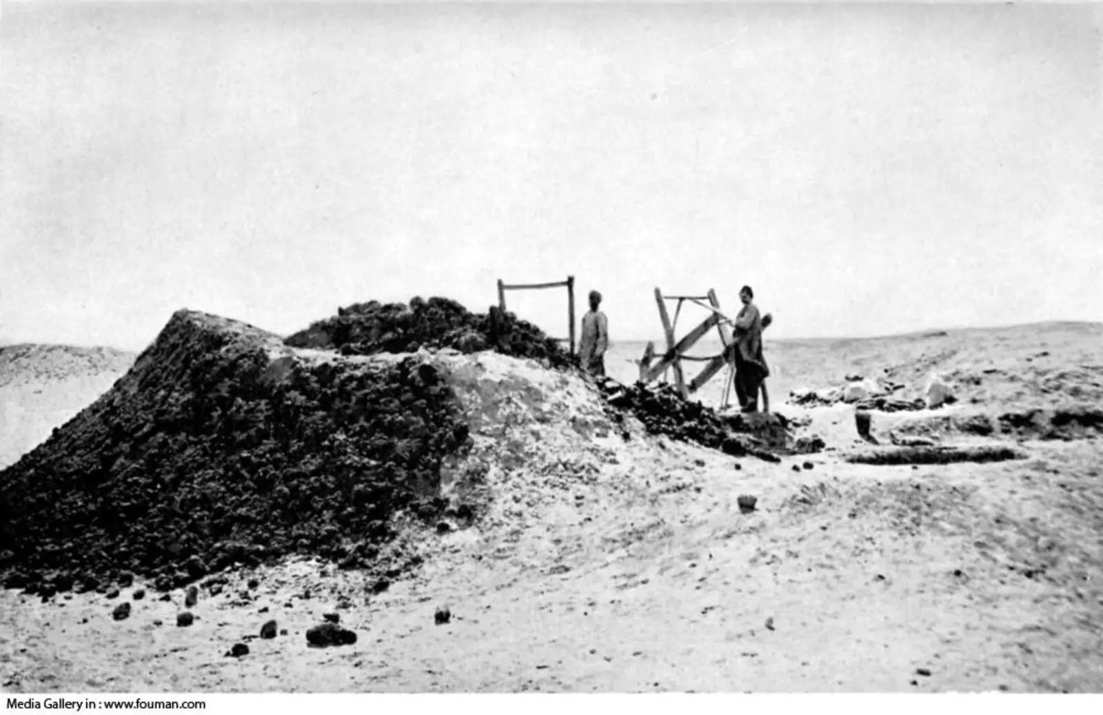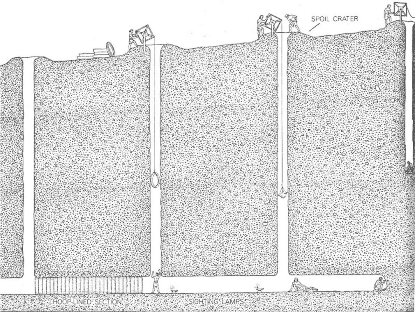 Глубину колодца определял главный мастер при помощи простого уровня (веревка с утяжелителем). Диаметр колодцев не превышал 1 м, высота галереи обычно варьировалась от 1 м 30 см до 1 м 50 см, ширина доходила до 80 см. При недостатке воздуха у колодца устанавливали кузнечный горн и при помощи камышовой трубки подавали воздух в галерею.