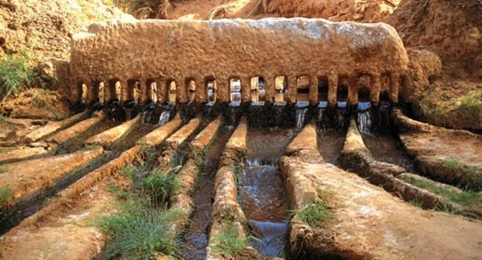 Гидротехническая система включает в себя основной колодец, который получает воду из подземного горизонта, систему туннелей, по которой вода транспортируется в определенное место, и вертикальные скважины для вентиляции вдоль всего маршрута, что также позволяет конденсировать влагу. Ко всему прочему, подземный водовод значительно снижает испарение драгоценной влаги.