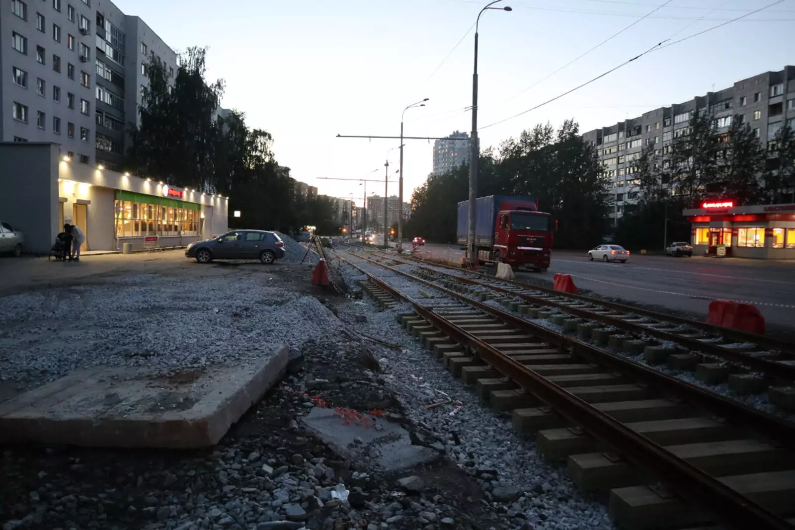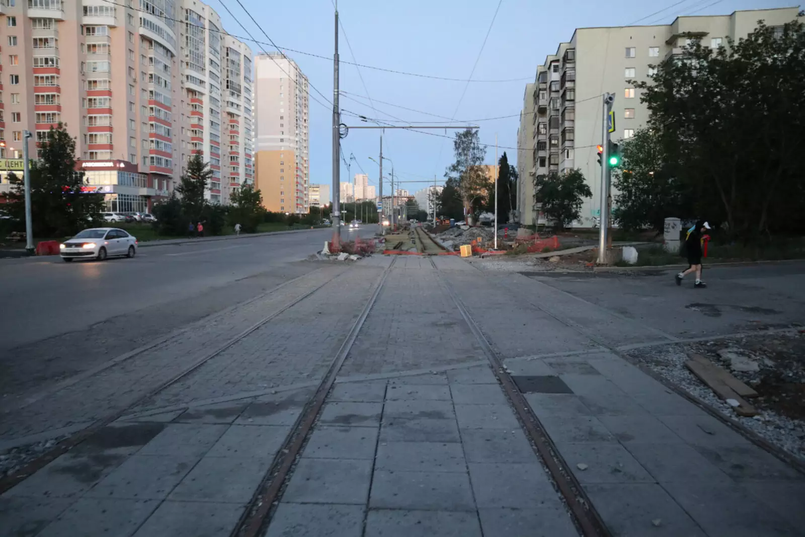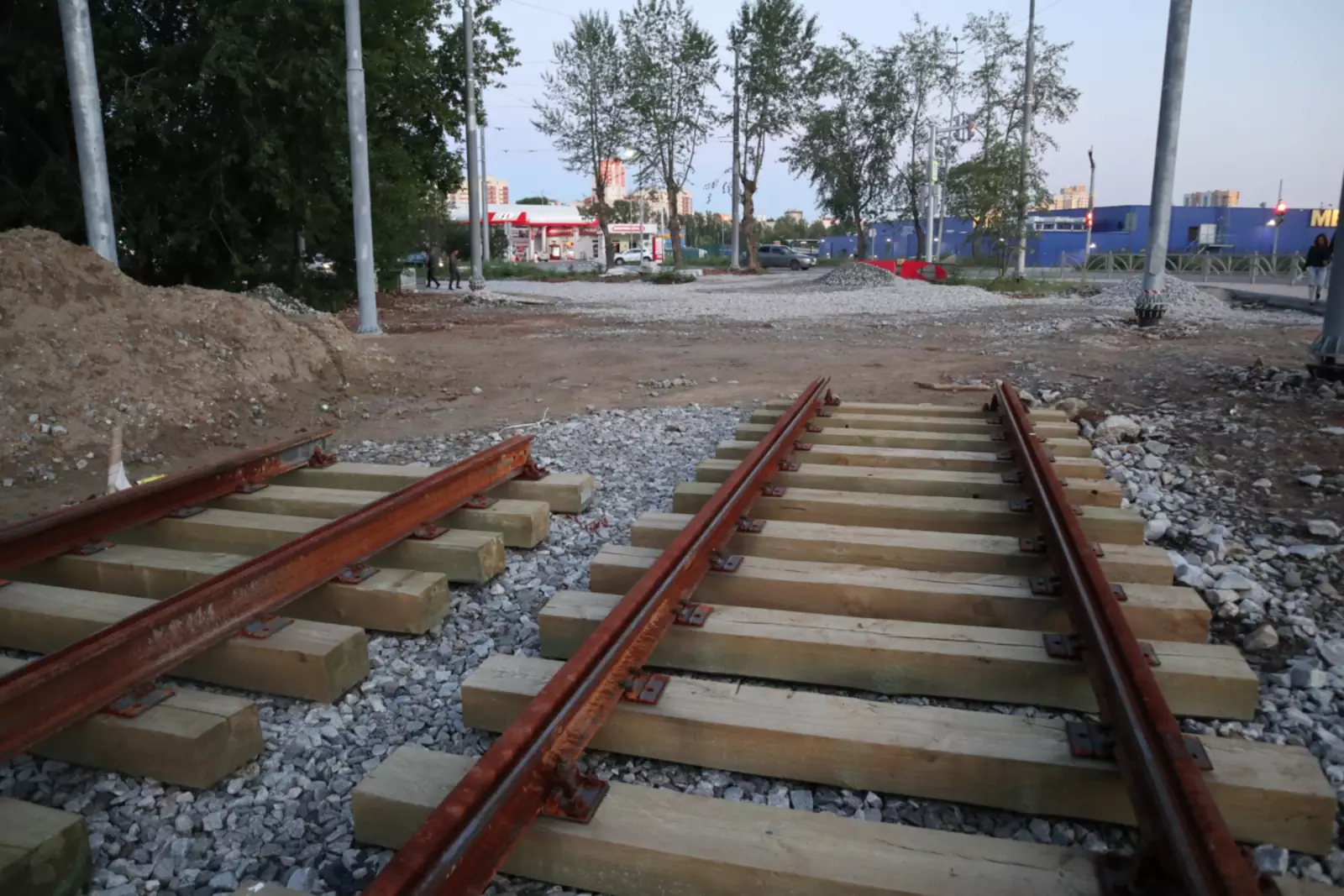 Не так часто в России строятся линии трамвая, так что наблюдение за такими стройками, это — каждый раз праздник! Ведь это так вдохновляюще: рельсы с шпалами можно видеть там, где ещё вчера машинки разбивали колёсами асфальт.