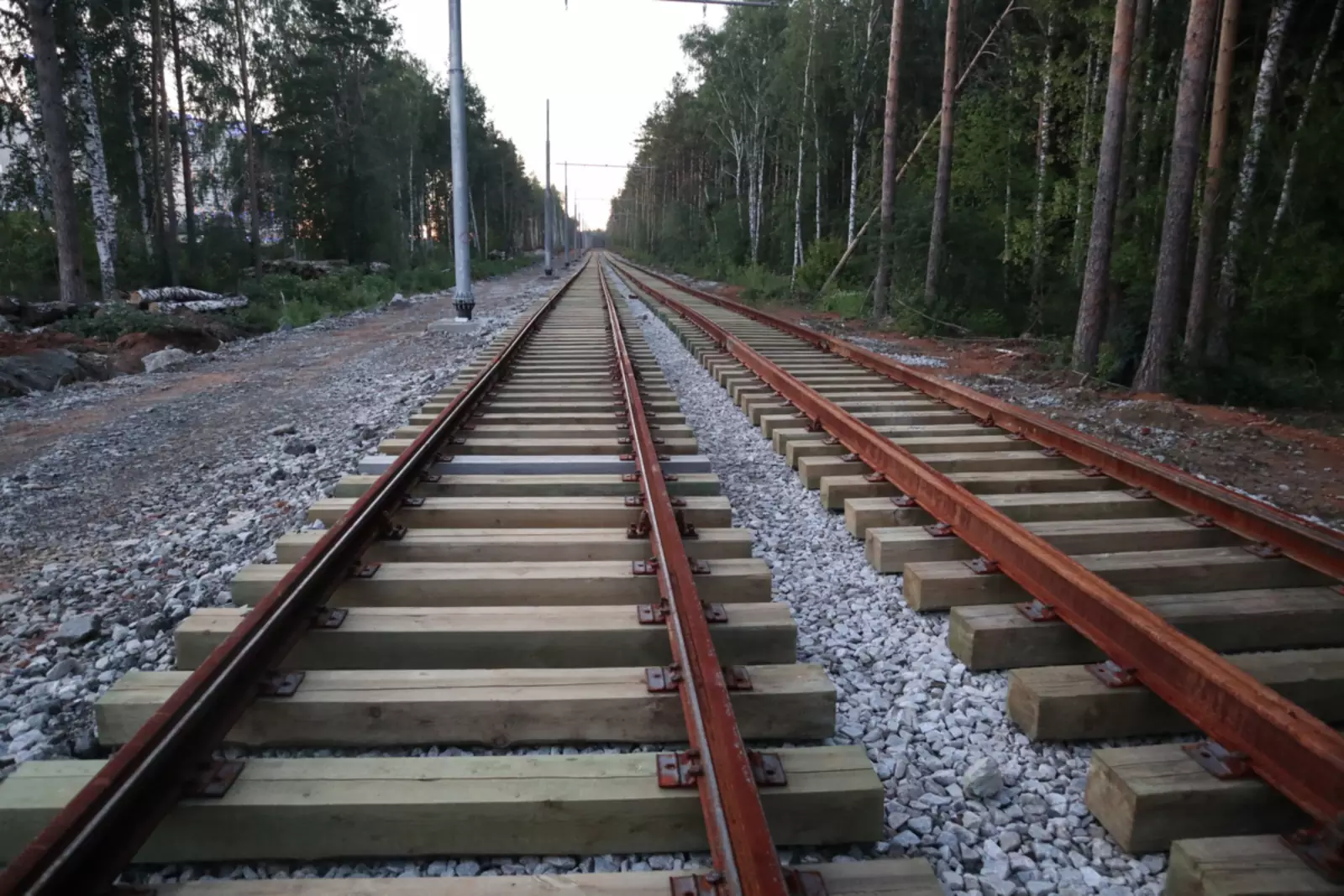 Далее. Технология строительства. Не очень понятно, почему в 21 веке до сих пор кладут рельсы на деревянные шпалы?