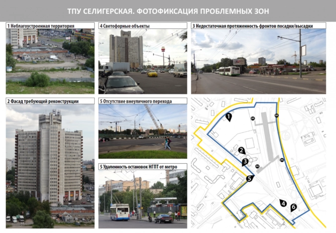 При строительстве ТПУ «Селигерская» остановки автобусов и маршруток планируется перенести ближе к выходам из метро, что позволит сократить время, требующееся на пересадку. На остановках смонтируют навесы, а для общественного транспорта сделают боковые проезды. На Пяловской улице появится отстойно-разворотная площадка вдали от жилых домов. В составе ТПУ будут организованы крытый трехуровневый паркинг и плоскостная парковка на 2000 машин в общей сложности. Таким образом, ТПУ будет «перехватывать» автотранспорт и позволит избежать стихийной парковки во дворах местных жителей. В многофункциональном комплексе разместятся продуктовые магазины, торговые павильоны, фуд-корт, помещения социально-бытового назначения. Кроме того, на территории ТПУ разместят детские площадки и оборудуют игровые комнаты внутри многофункционального комплекса. Предусмотрено также строительство развлекательного центра с кинотеатром.