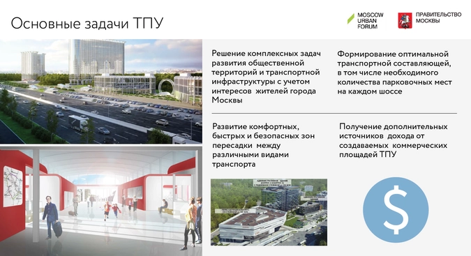 Всего до 2020 года в Москве планируется построить 273 ТПУ, из которых 81 плоскостной и 192 капитальных. Последние предполагают возведение многофункциональных комплексов. Что будет построено в составе многих капитальных ТПУ - определяется с учетом мнения горожан. Транспортно-пересадочные узлы увяжут в единую систему все виды общественного транспорта, что позволит пассажирам сократить время в пути. Благодаря перехватывающим парковкам в составе ТПУ будут созданы привлекательные условия для пересадки с личного автомобиля на общественный транспорт, а значит, снизится нагрузка на дороги.