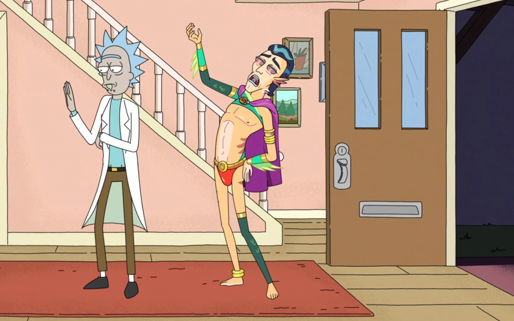 Пока Морти пытается наладить личную жизнь, Рик разбирается с очередным «заклятым вражиной» — мистером Нимбусом. Стоп-стоп, кто такой этот мистер Нимбус? А это что за цивилизация собаколюдей, которая развивается благодаря лютой ненависти к Морти? Ничего не понятно, сплошной сумбур, а вместо того, чтобы дать внятное объяснение, повествование несется вперед, подкидывая одну неприличную шутку за другой. Да и не важны все эти детали, если честно, когда судьба планеты решается за ужином с жеманным Акваменом. Или не решается, черт его знает.
