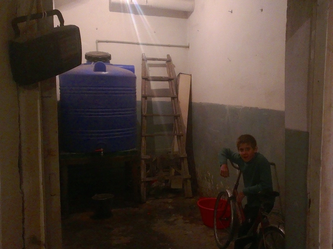 — Уже четыре месяца, как мы все прячемся здесь. Как только начинают летать снаряды, бежим вниз, перестают — выходим помешать еду на плитке, затем снова тикаем. Бывает, что и пули над головой в это время свистят.