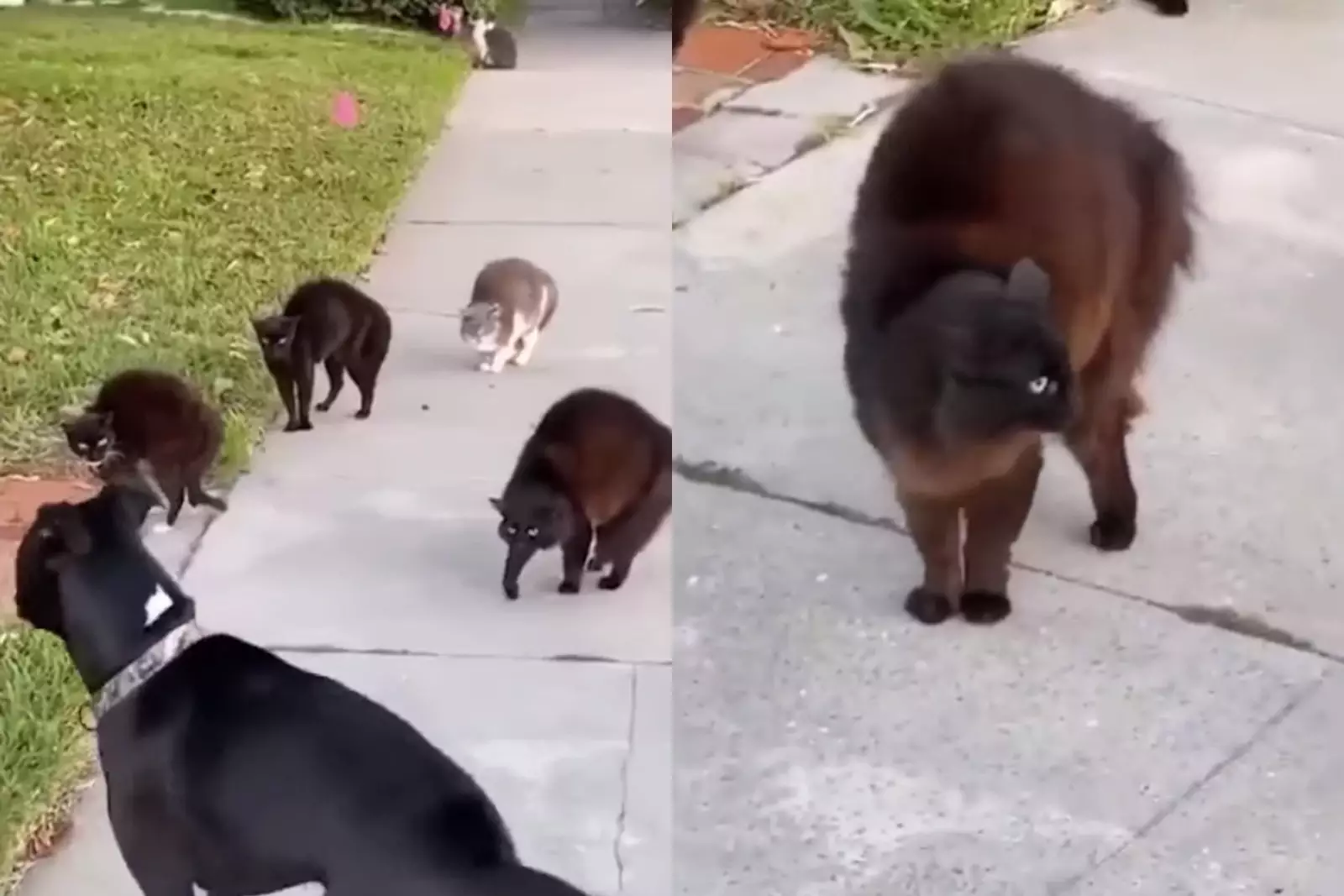 Пес решил перейти дорогу банде уличных котов и сильно пожалел