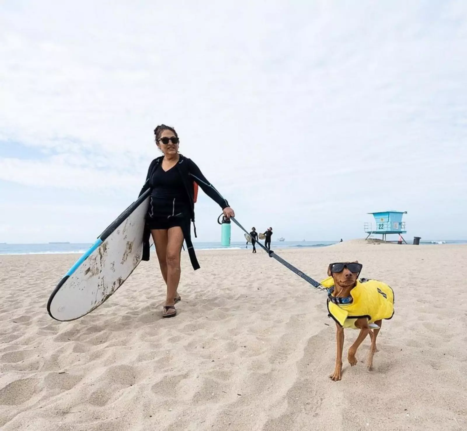 Тренировки Расти по серфингу вдохновили Софию забыть о страхах и отговорках, и тоже заняться этим увлекательным водным видом спорта. Поэтому теперь она с радостью вместе с питомцем ловит океанские волны в любую погоду, много гуляет, бегает и даже катается на скейтборде.
