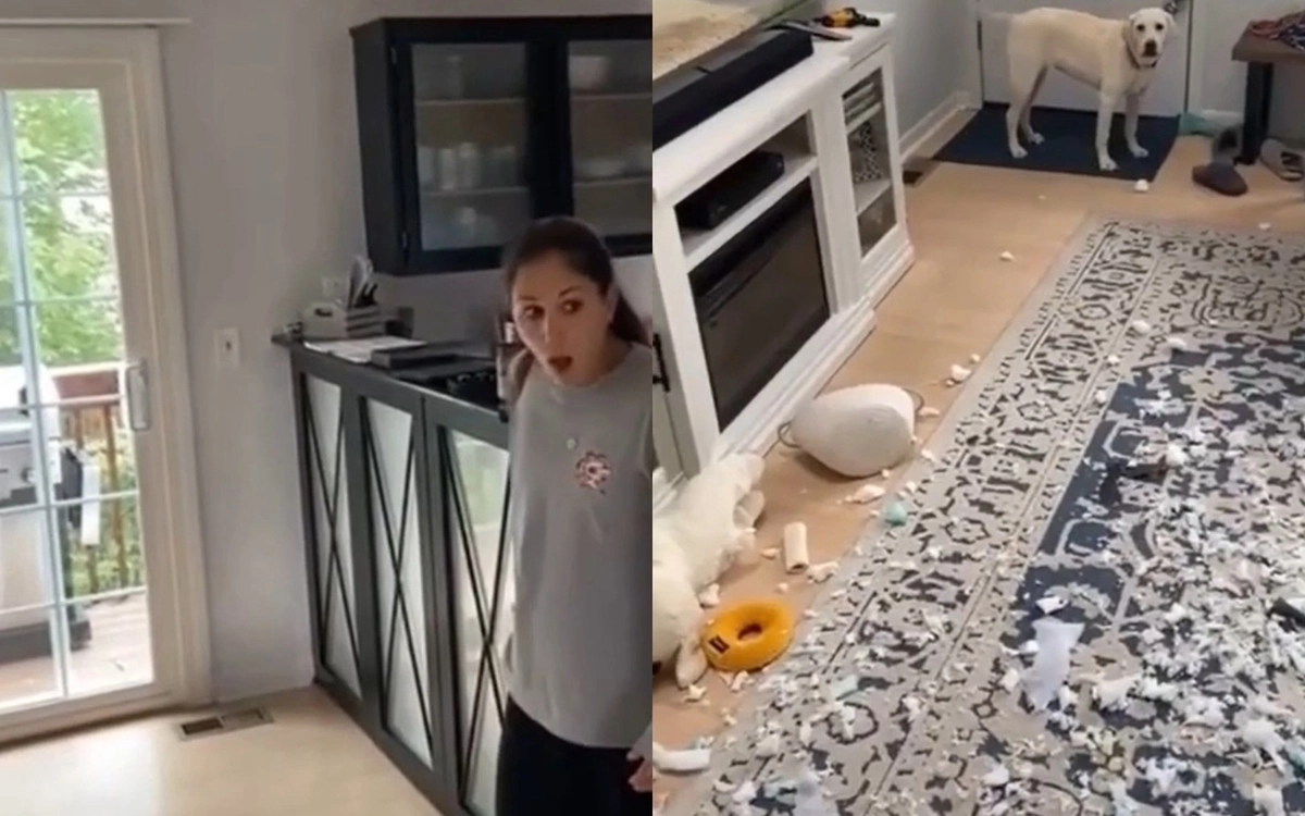 Пес устроил хозяйке сюрприз и украсил комнату, но она была не в восторге