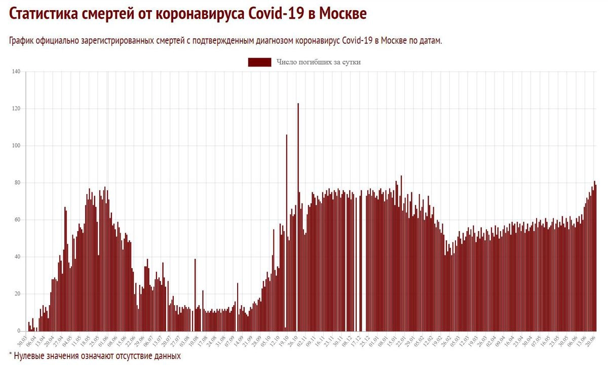 График случаев смерти от COVID-19 в Москве к 20 июня 2021 года. Данные с сайта Coronavirus-monitor.info.