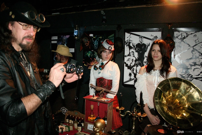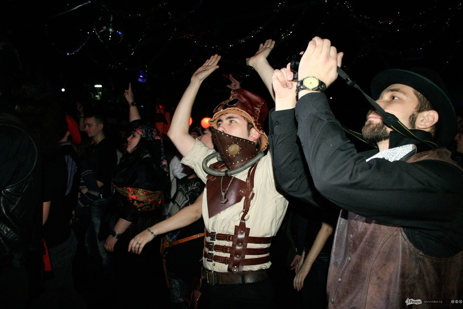 На одной из таких и повезло побывать нашему корреспонденту. В московском клубе Plan B состоялся "Пиратский Новый год". Группа «Дом Ветров», раскрывая тематику флибустьеров и духа приключений при поддержке творческой ассоциации «Новая роза», провела отличный праздник, выдержанный в духе стим-панка.