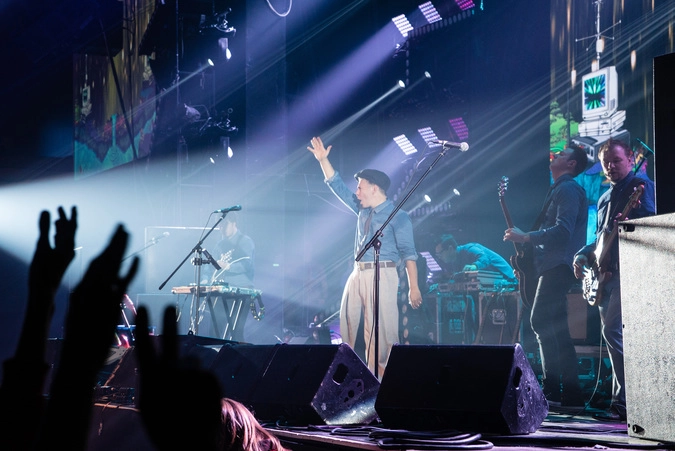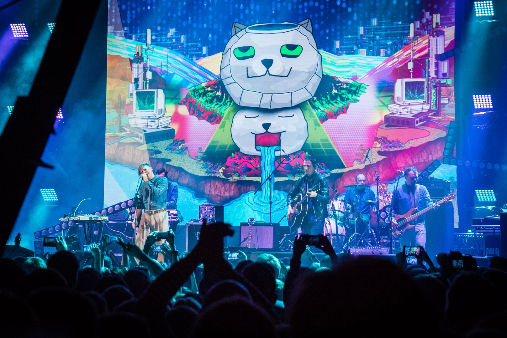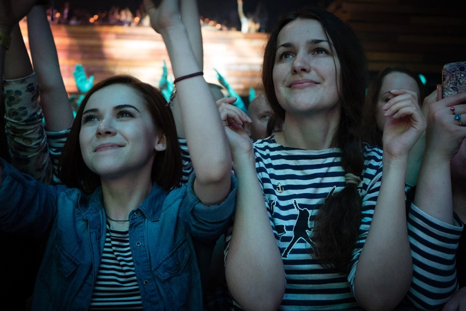 Эта самая новая волна «Мумий тролля» принесла небывалое число публики в YotaSpace. Даже в глубинах клуба, у бара люди от 16 и старше слушали музыку, почти плотно прижавшись к друг другу. Обилие юных девиц, впрочем, делало эту картину вполне приятной, под стать ритмам и текстам «Мумий тролля»: всё в зале было ярко, чуть сахарно, по-весеннему.