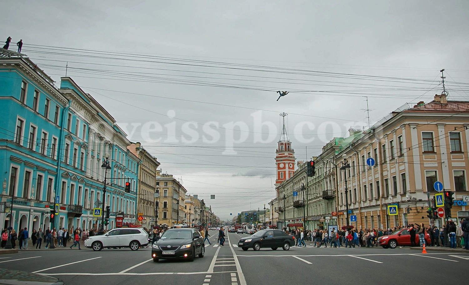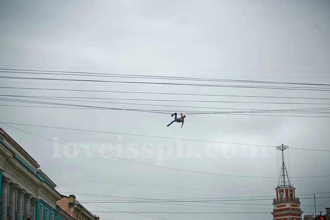 От многих пешеходов отличало Павла то, что сделал он это на высоте 20 метров, по оптоволоконным проводам. Фактически, это была уже вторая успешная попытка совершить переход через Невский по проводам. Впервые Павел попытался осуществить задуманное год назад, но тогда он долез лишь до середины и вернулся обратно, так как у него был другой план, ну, а в этот раз он добрался до конца. Оказавшись на крыше дома № 27 по Невскому проспекту, Паша наконец-то смог расслабиться, потому что все 40 метров пути он проделал в дичайшем напряжении, без всякой страховки.
