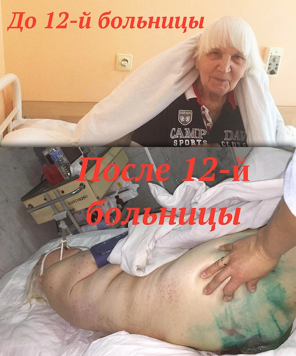 Пролежни от меня они скрывали. Я вообще просто пришла в шок — у нее руки были опухшие, все в синяках. Мне сказали, что пролежней у нее нет, но пролежни были чуть ли не до костей, в гное. У меня предположение, что ей не давали даже в туалет сходить по-большому (пациентка ходила через катетер. — Прим. „Ридуса“), потому что у нее живот был весь наполненный. Я ее стала спрашивать: „Бабуль, ты в туалет ходишь по-большому?“ Она мне стала руку сжимать, плакать. Я говорю: „Над тобой тут издеваются?“ А она все так же и плачет, и руку сжимает.