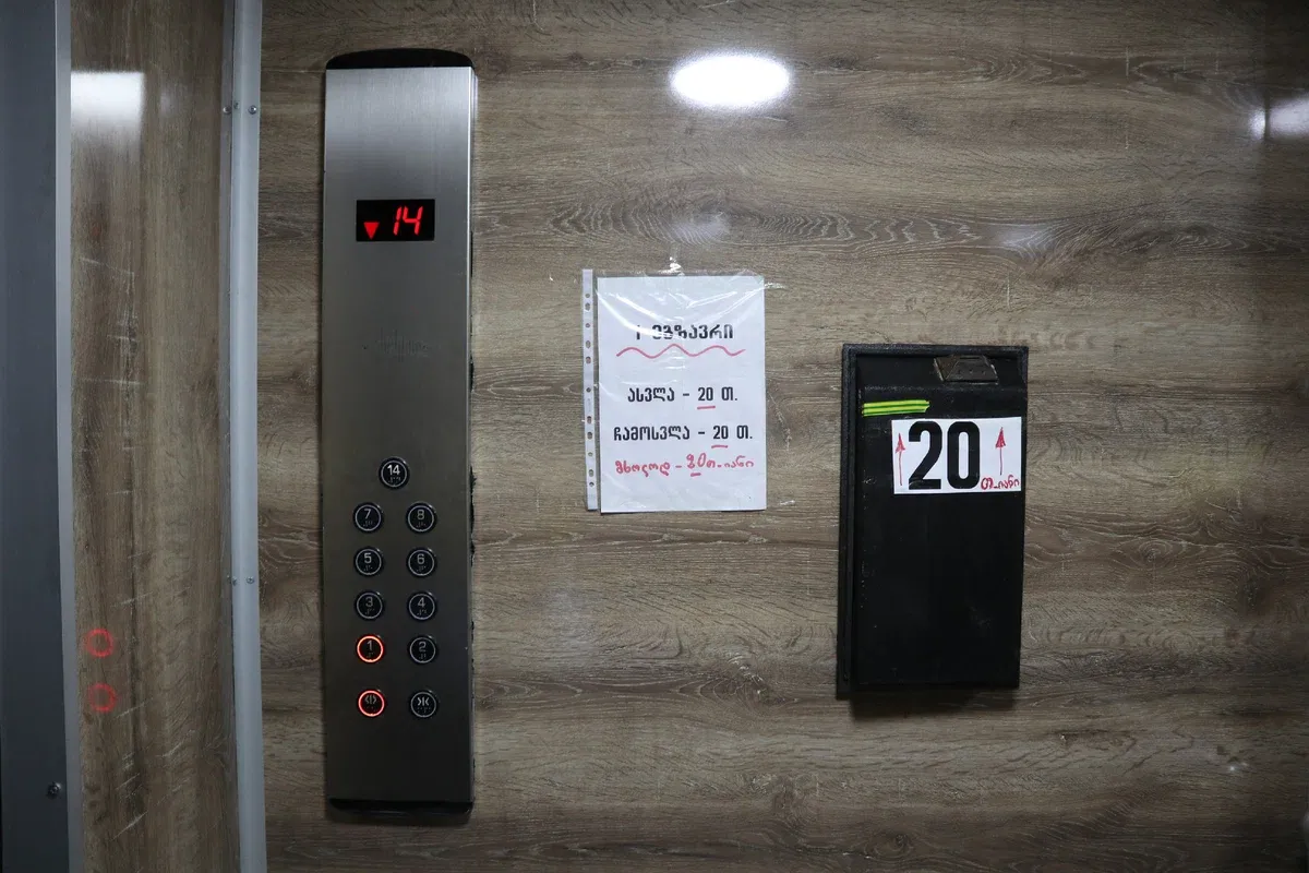 Советские подъезды здесь (как и почти везде в Грузии) — старые и задрипанные, в них не горят лампочки. Из двух-трех лифтов обычно работает один. Тем не менее в центральном доме специально для «транзитчиков» сделали современный отдельный дорогой лифт, который останавливается ещё и не на всех этажах, а для жителей дома работают другие, более дешёвые советские лифты.